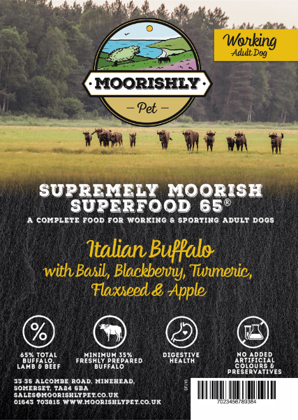Our Sporting & Working Dog range brings together the best of Supremely Moorish Superfood 65 and Moorishly Grain Free Dog Food, crafted for dogs who need extra energy, strength, and stamina to perform at their best. Each recipe is made with high-quality, grain-free ingredients and packed with nutrient-rich meats to support muscle health, recovery, and overall wellbeing.